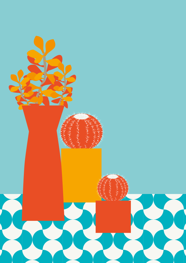 En esta ilustración, el protagonista es un cactus con mucha clase. Sus líneas estilizadas y su porte sofisticado lo convierten en una pieza llena de personalidad. Reposa en una maceta con diseño cuidado, sobre las emblemáticas baldosas de una casa típica valenciana, en una fusión perfecta entre tradición y estilo contemporáneo. La paleta de color tiene carácter y un toque distinguido para cualquier espacio.
